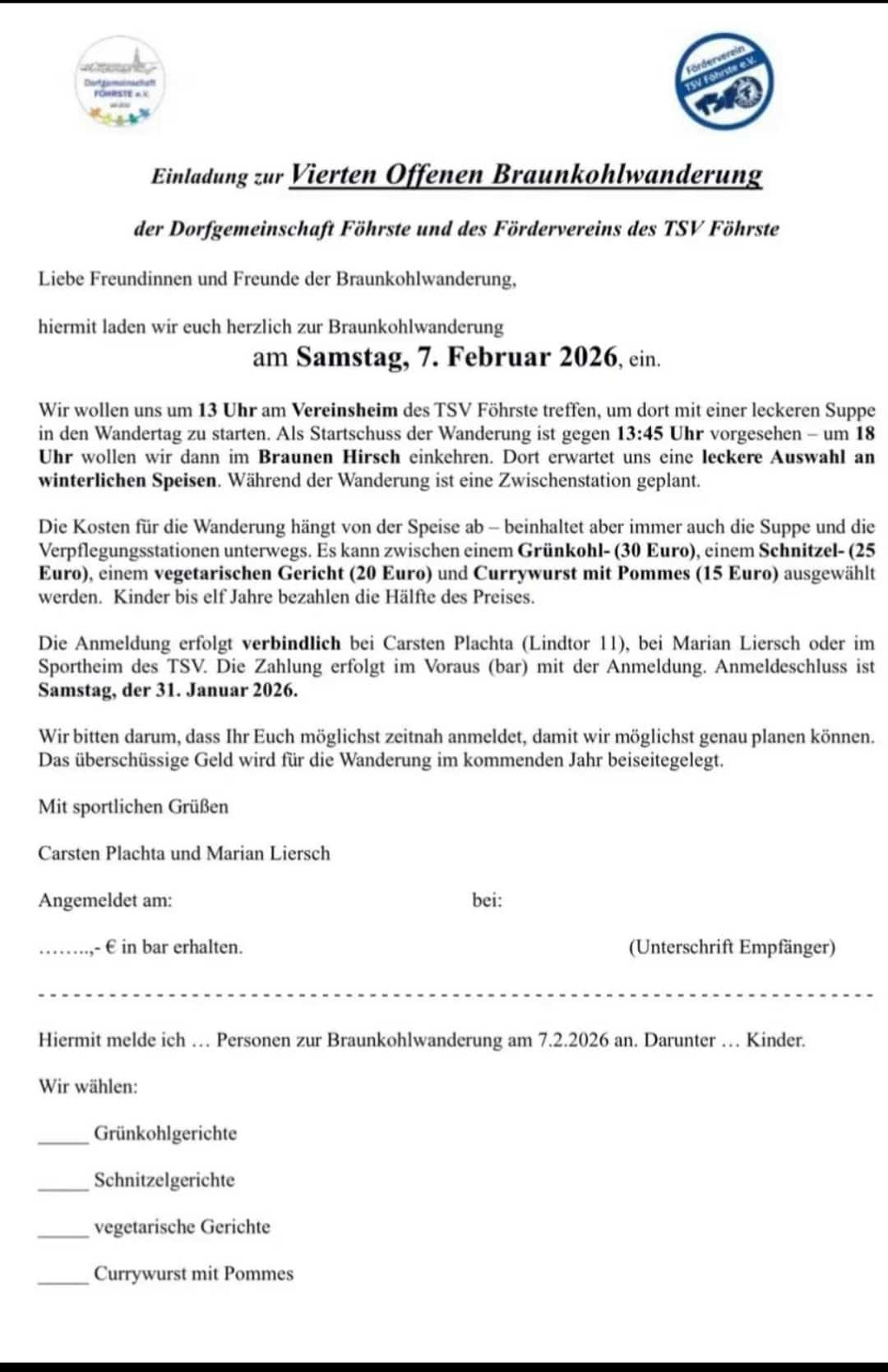 Treffpunkt: Sportheim Föhrste